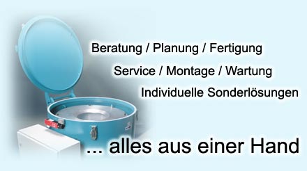 - Späne- und Schlammaufbereitungsanlagen mittels manuellen Chargenzentrifugen und vollautomatischen Durchlauf zentrifugen oder Schubbodenzentrifugen ausgestattet mit Spänebrecher, Förderer, Hebe-Kipp-Geräte.
